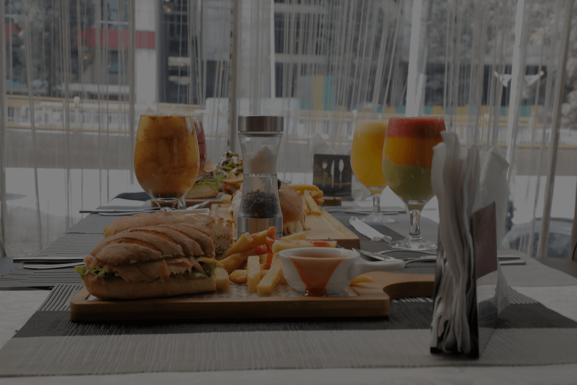 Immerse yourself in a modern culinary adventure with our innovative menu, where specialty burgers, artisanal sandwiches, and distinctive entrees take center stage. We pride ourselves on using only the finest ingredients, meticulously sourced from our own stores, ensuring each dish is of the highest quality. Complement your meal with our selection of freshly pressed juices and expertly crafted smoothies, designed to refresh and delight.